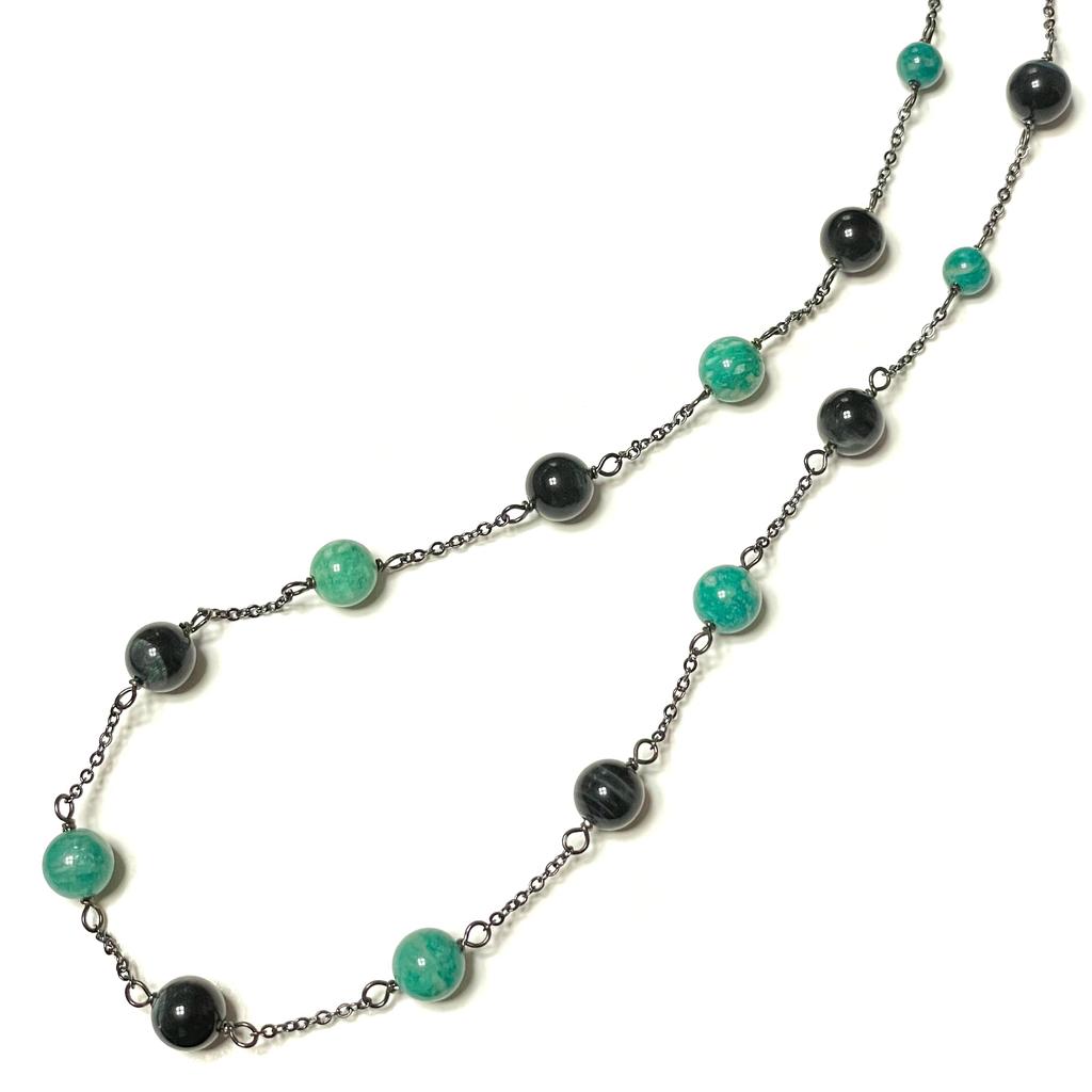 Blue Tiger Eye and Russian Amazonite Long Tiger Eye and Natural Power AC316 [Cherry] Necklace, Amazonite, Stone, Stone,