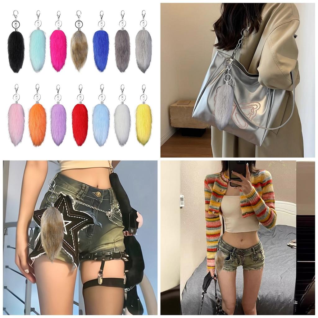 16cm Langer Tier Schwanz Schlüsselanhänger aus Kunstfell Weicher Taschenanhänger Handtaschen Telefon Zubehör Auto Schlüssel Dekoration und Zubehör