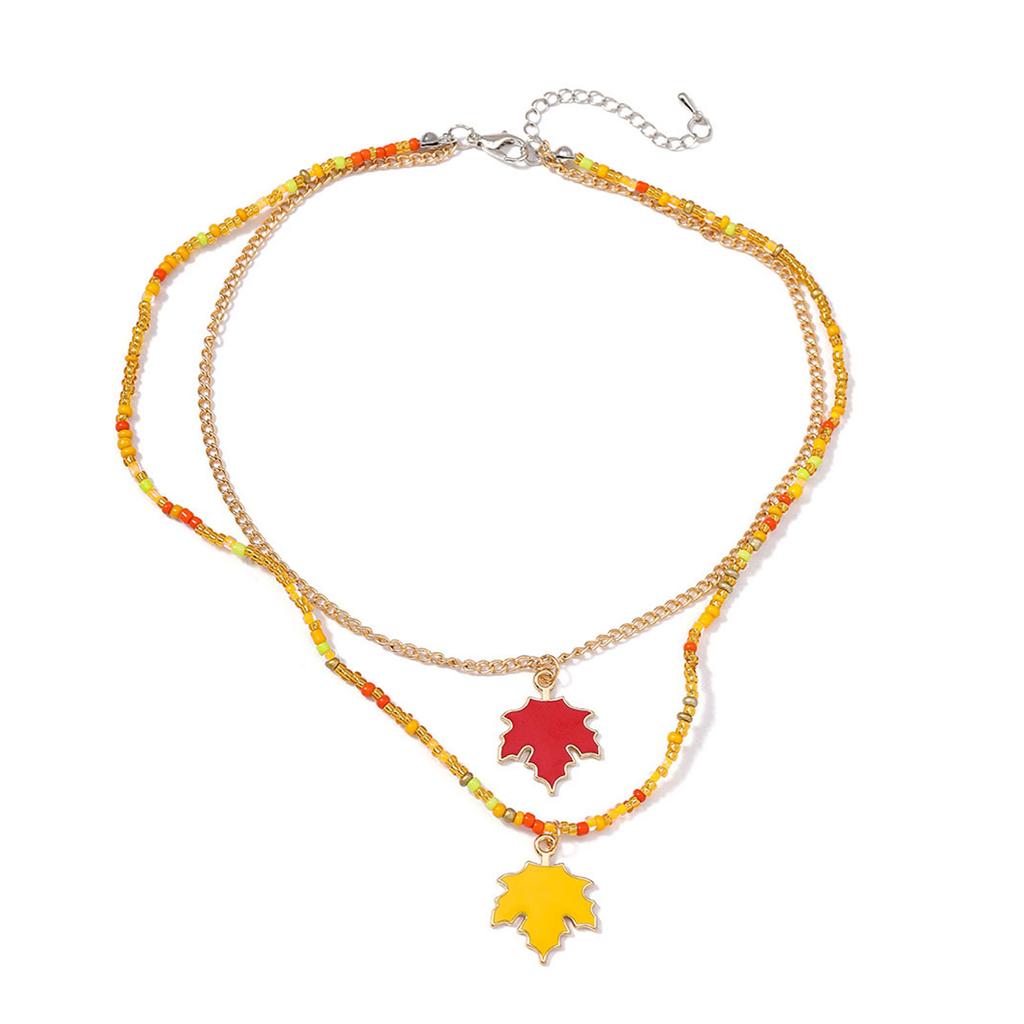 Modische Ahornblatt-Anhänger-Halskette Kristalle Herbstblätter Schmuck für Frauen mit zierlichen Doppelschicht-Designs