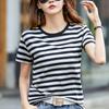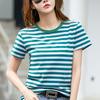 Sommerliches gestreiftes lockeres Kurzarm-T-Shirt für Damen Atmungsaktives Oberteil mit halben Ärmeln und Schulterpartie vorne für Damen Vielseitiges Damenhemd