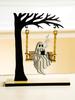 Halloween Schwingendes Skelett Ornament Gruselige Baumschaukel Geist Hölzliches Tischschild mit Sockel Heim Büro Schreibtisch Party Dekoration