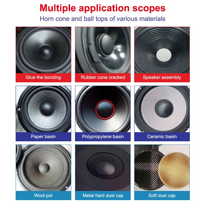 15/50/110ml Schwarz Lautsprecher Reparaturkleber Schaumstoffseite Staubkappe Gummisicke Verklebung Sicke Risse Starker Klebstoff