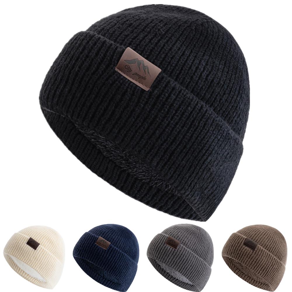 Neue CITY Lederetikett Wintermütze Plüschfutter Warmhaltemütze Stilvolle Weiche Beanie Mütze für Männer Frauen Outdoor Strickmütze