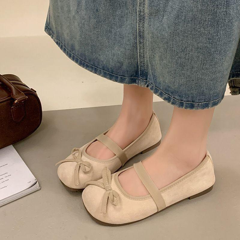 Französische Mary Jane Schuhe mit flachem Ausschnitt Damen 2025 Frühling und Sommer Schleife Ballerinas Damen Oberbekleidung Temperament flache Schuhe