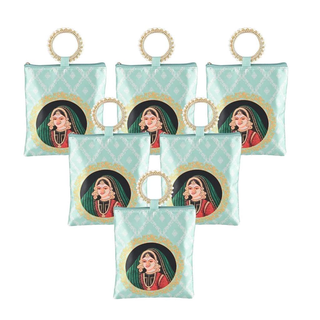 6 Pcs Silk Small Hand Bags for Women Stylish with Zip & Handle | Traditional Handheld Bags for Women | Ethnic Ladies Purse Handbag for Return Gifts