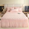 3-teiliges Neues Luxus Weiches Elastisches Romantisches Bettrock-Set mit 1 Bettrock + 2 Kissenbezügen, Flauschige Haptik und Feine Textur, Atmungsaktiver Komfort Nicht Erstickend