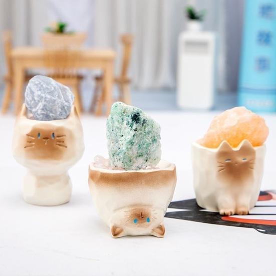 Mini Katzenornament mit Kristall Desktop Harz Katzenfigur Aroma Diffusor Stein Aromatherapie Duftöl Diffusor für Zuhause Büro Meditationsraum