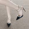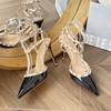 Nackte graue Niet High Heels Damen Dünne Absätze Neues Temperament Sexy Königsschwester Spitzkopf Wort mit Taschenkopf Sandalen
