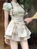 2025 Frühling/Sommer Damen Stilvolles Kurzarm Zweiteiler-Set: Neuer chinesischer Stil Oberteil & Rock