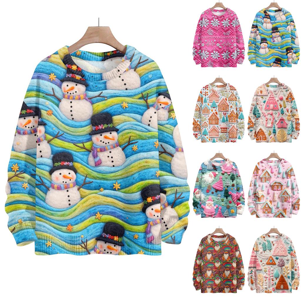 Weihnachts-Sweatshirts für Damen, Strickpullover, süßes Hemd, Herbst, Rundhalsausschnitt, Pullover, Tops