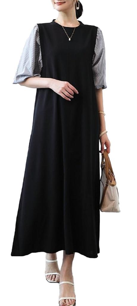 NEKORA Lang Kurz Puff Maxi Sommer Schweißfleck UV Plus Sommerkleid für Frauen in ihren 50ern Schwarzes Kleid, Ärmel, Ärmel, A-Linie, Länge,
