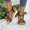 2025 Summer Women Sandals Floral Print Bohemian Sandals Wedge Thick Sole Elevated Elastic Strap Open Toe Hollow Ladies Sandals