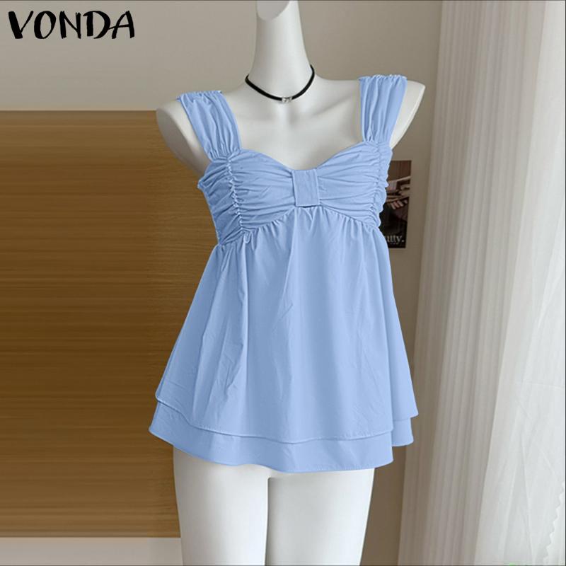 VONDA Women Strap Sleeveless Ruffled Back Elastic Casual Stretch Tank Tops