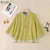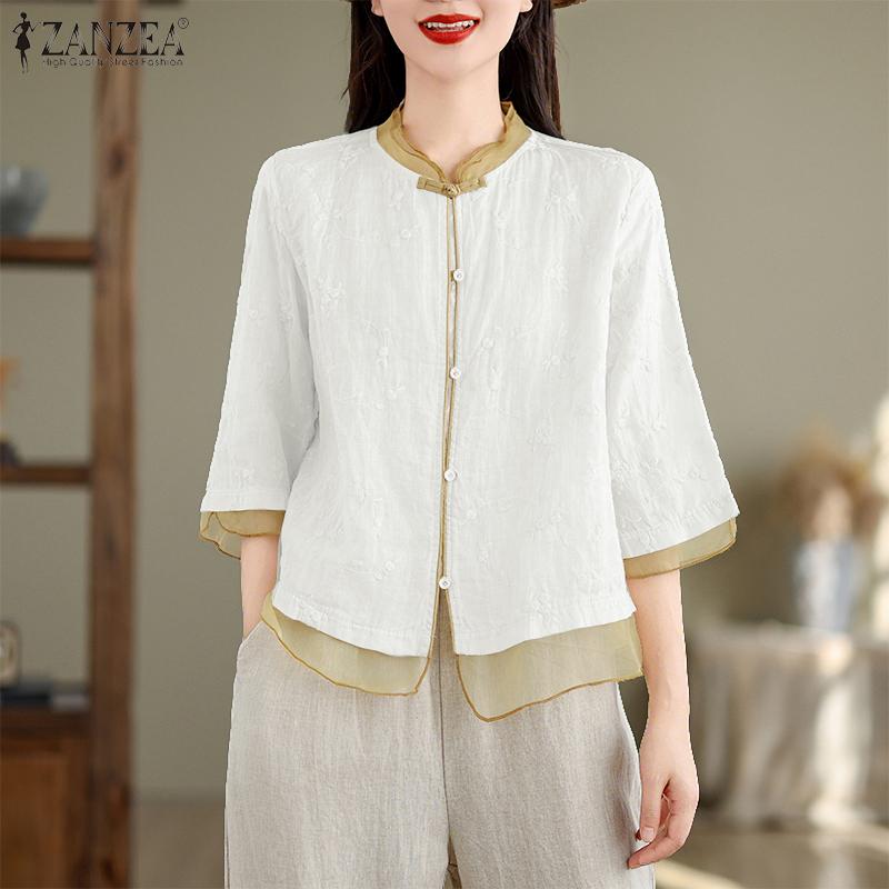 ZANZEA Vintage Damen Kurzarm Knopfleiste Patchwork Ethnische Stickerei Lässige Bluse