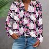 Damen Modisches Und Lässiges Hemd Langarm V-Ausschnitt Knopf Bedruckte Bluse Top