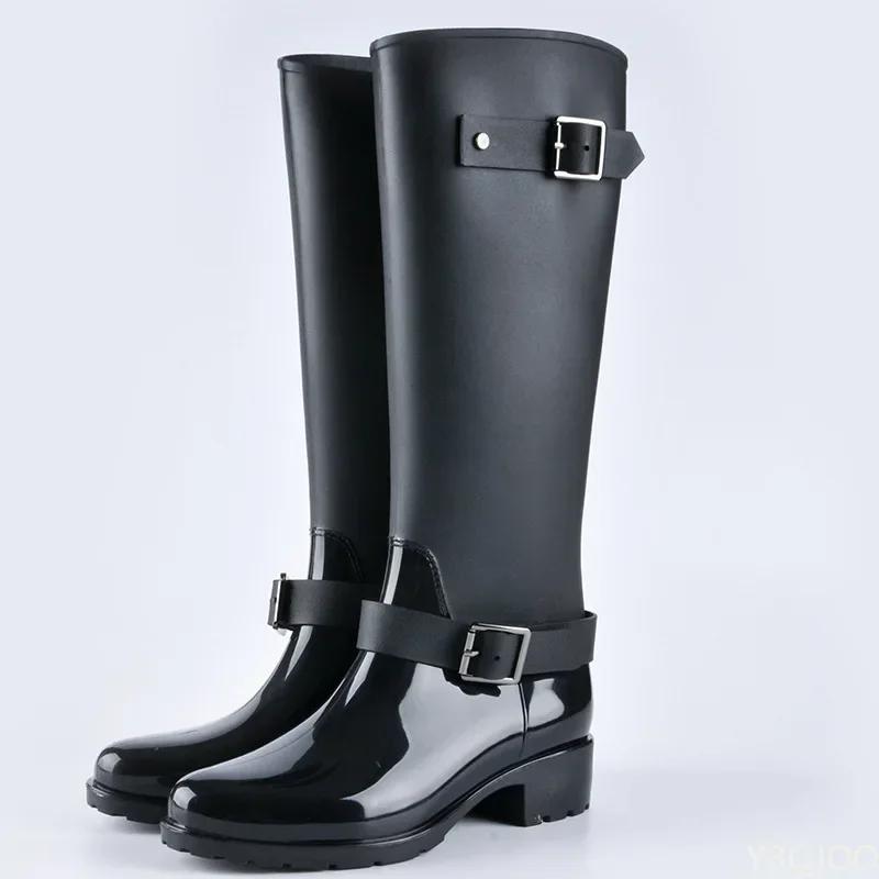 Hohe Stiefel im Punk-Stil mit Reißverschluss, reine Farbe, Regenstiefel aus Gummi, für den Außenbereich, Wasserschuhe für Damen, Größe 36–41, Übergröße