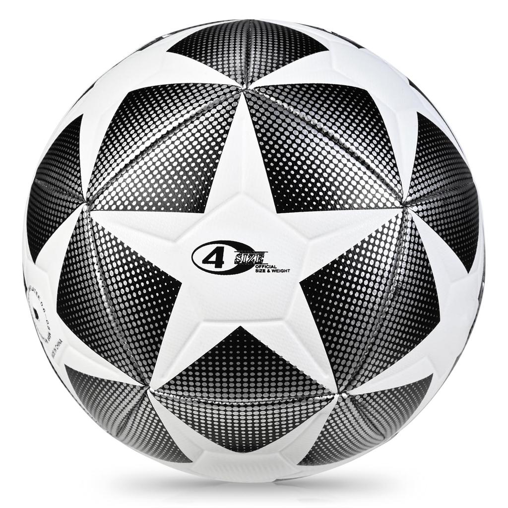BYAOSUN Fußballgröße PU und Perfekt für das Training und Erhältlich in Weiß oder Silber Schwarzer Ball, 4, Leder, Weich, Langlebig, Abriebfest,