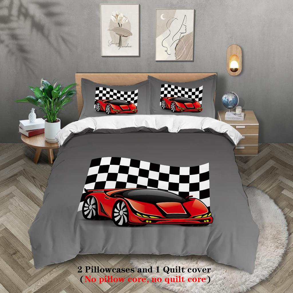 3-teiliger Daunenbettbezug mit Cartoon-Rennmusterdruck (1 Bettbezug+2 Kissenbezüge, ohne Füllung) Bettwäsche-Set