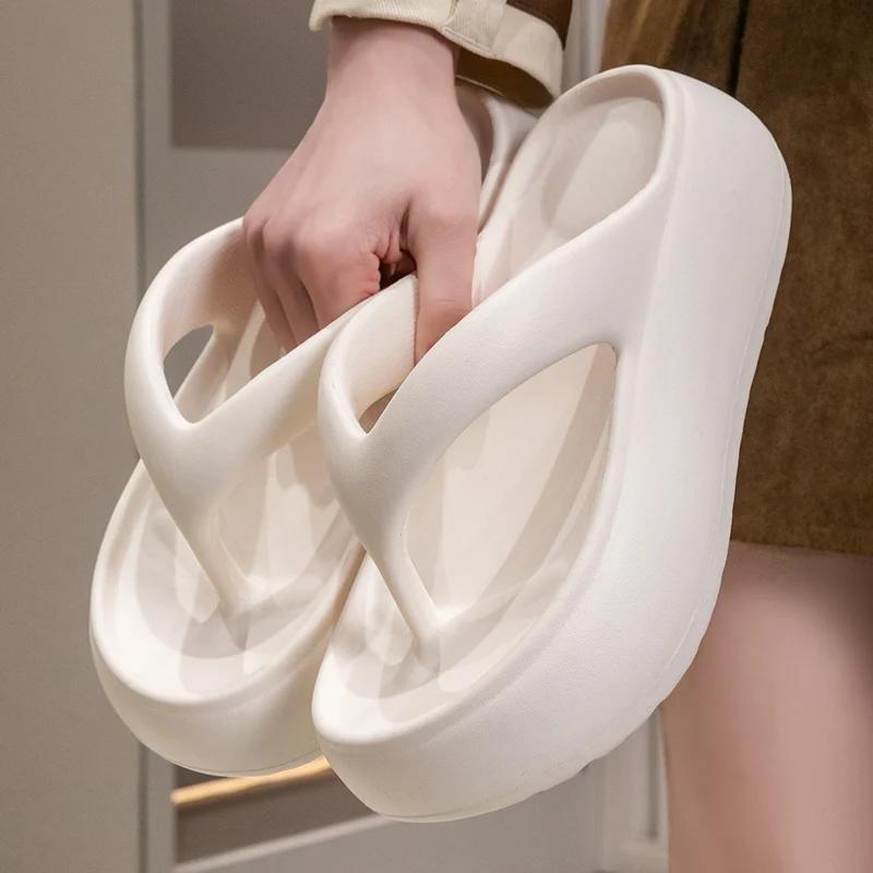 Klobige Plateau-Zehensandalen für Damen Sommer 2025 Zehensteg Dicke Sohle Wolken-Slipper Frau Strand Rutschfest Weiche Sohle Zehensandalen