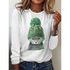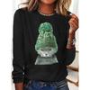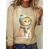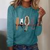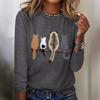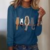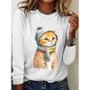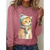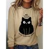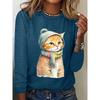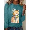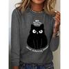 Rundhals 3D-bedrucktes Katzenmuster Top Modische Lässige Langarm Damen T-Shirts