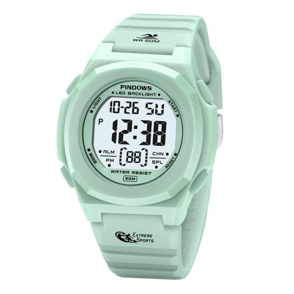 Die digitale Sportuhr von PINDOWS ist bis 50 Meter wasserdicht und verfügt über einen LED-Alarm und eine Hintergrundbeleuchtung, was sie zu einem perfekten Geschenk für jede Frau macht.