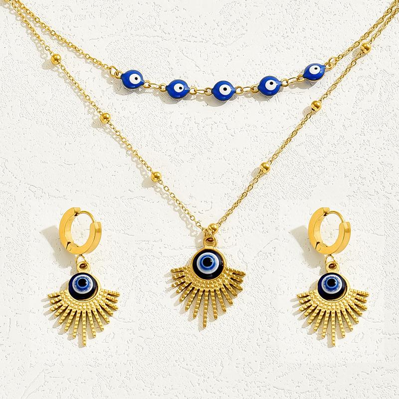 Simple and stylish commuter style earrings, necklace set, devil's eye niche design earrings, long collarbone chain.