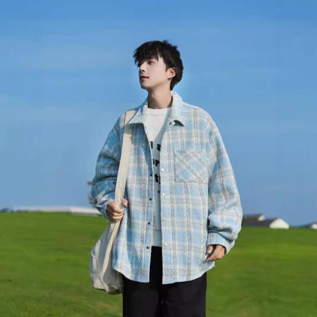 High Street Autumn Men's Fashion Versatile Lapel Plaid Jacket Loose Casual Jacket