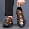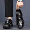 2025 Summer New Designer Casual Leather Sandal for Men Hallow Breathable Beach Shoes Male Solid Color Fashion Dress Sandals Man