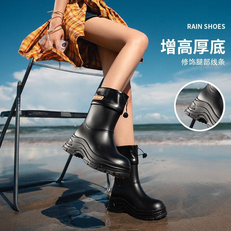 Short rain shoes thick-soled women's rubber shoes outdoor wear non-slip water boots thickened water shoes velvet short rain boots fashion