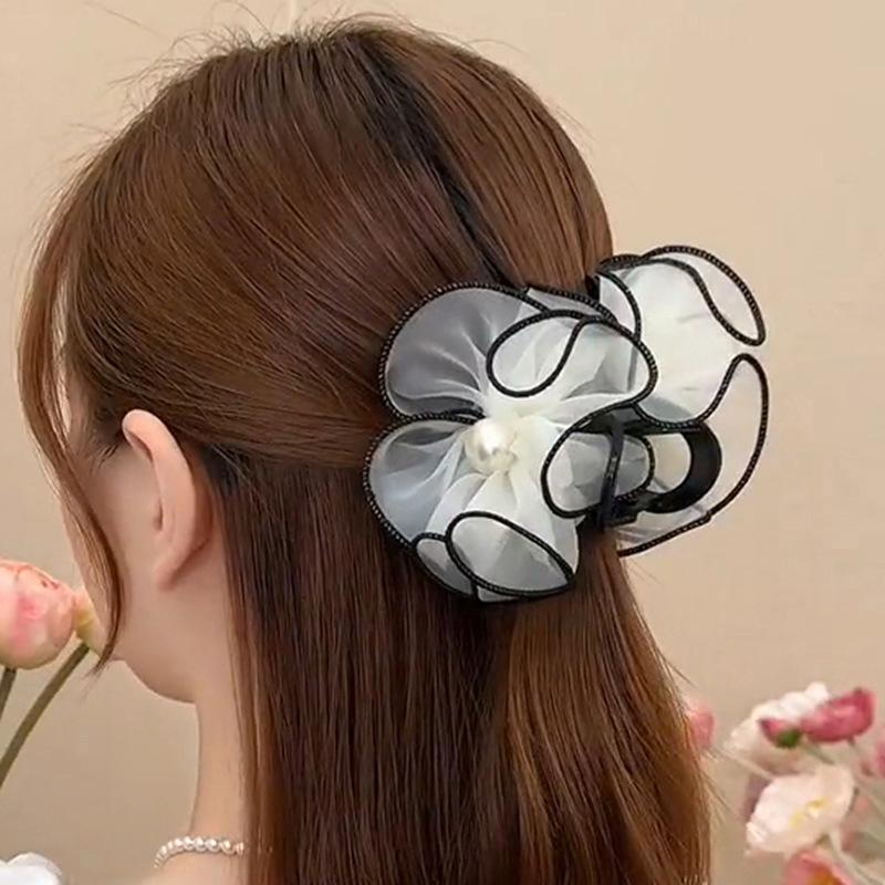 Netzstoff Blume Haarklammer Elegant Perle Hinterkopf Haarspangen Damen Knospe Hai-Klammer Mädchen Haaraccessoires