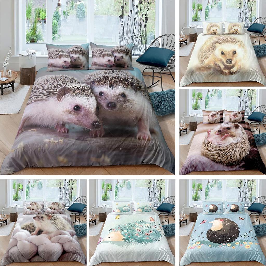3D-Igel-Bettwäsche-Set, Queen- und King-Size-Größe, 2/3-teilig, luxuriös, Tier-Bettdecke/Bettbezug/Kissenbezug-Sets