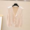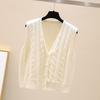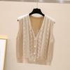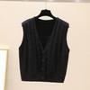 Damen Strickjacke mit Knöpfen Wolle Gestrickte Strickjacke Gilet Locker Zopfmuster Preppy-Stil Weste Ärmellose Oberbekleidung