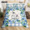 Rosa Kirschblüten Bettbezug Fröhliches Ostern Thema Hasenohren Ostereier Bettwäsche Set Polyester Schmetterling Blume Bettdeckenbezug