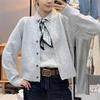 Silk scarf tie-up button lapel pullover knitted cardigan women's autumn new loose age-reducing sleeveless vest two-piece set
