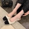 Französische quadratische Zehenpartie hellfarbene Mundpartie farblich passend leere einzelne Schuhe 2025 Frühling und Sommer dicker Absatz bequeme flache Schuhe Ledertasche Kopf Sandalen
