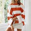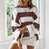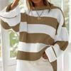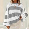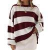 2KWEIRD Rundhals Langarm Gestreifter Pullover für Damen Mode Glockenärmel Locker Gestrickte Pullover Y2k Preppy-Stil