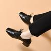 Damen-Frühlingsschnür-Ballerinas mit eckiger Spitze, bequeme kleine Einzelschuhe, ein Schuh und zwei kleine Lederschuhe.