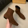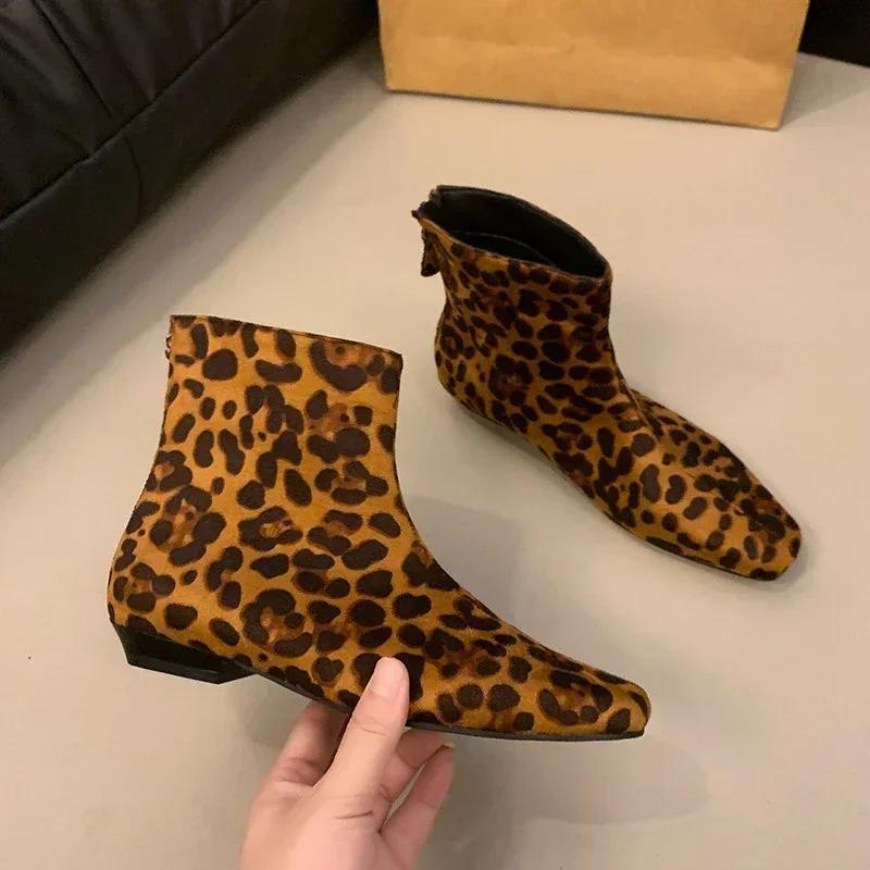 Leopard Flats Ankle Boots Suede Warm Women Shoes Winter Brand Square Toe Casual Chelsea Trend Low Heels Snow Boots Mujer Zapatos