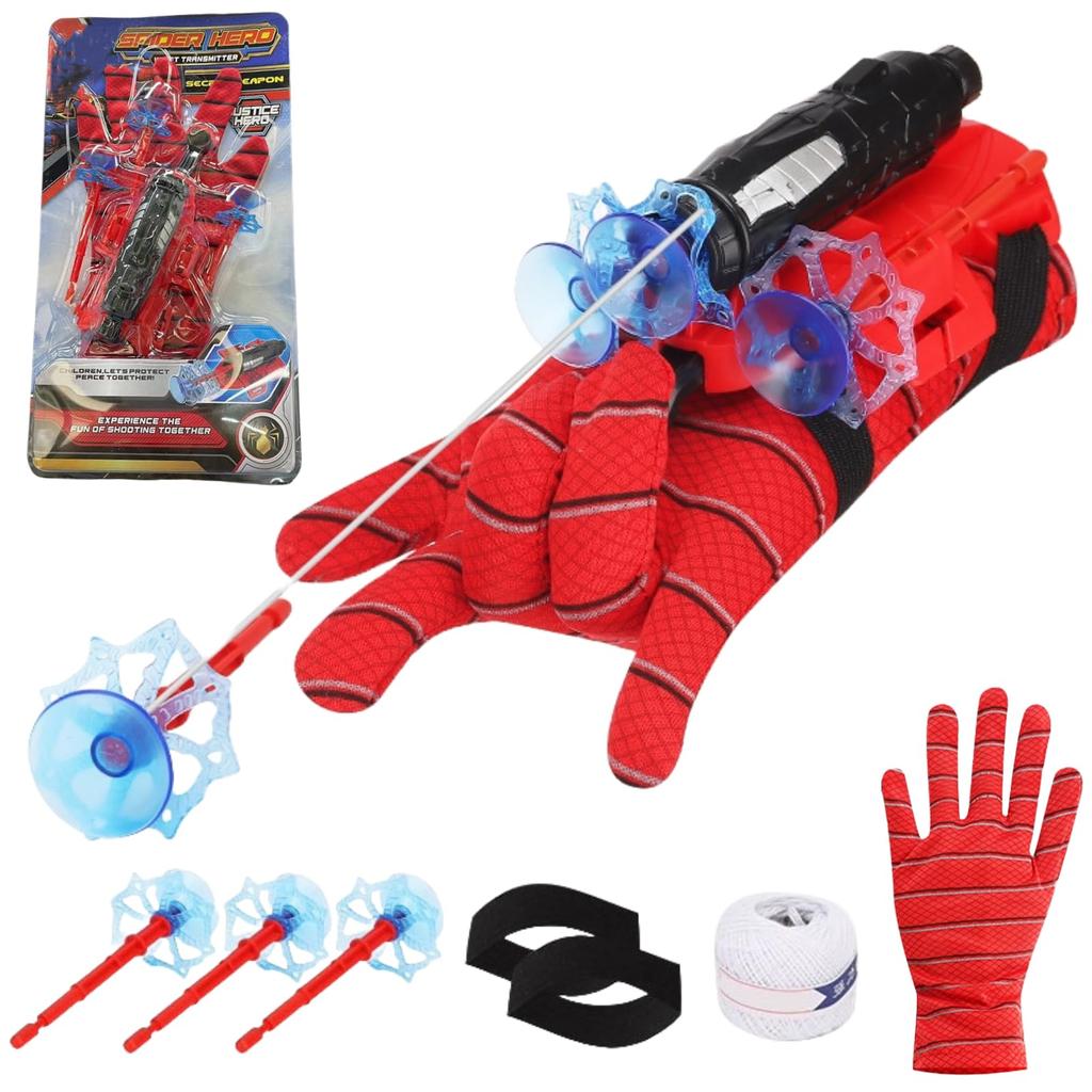 GRHONC Spider Web Shooter String Toy with Suction and Launcher for Kids Cup, Trigger, Rope, (Spider Launcher)