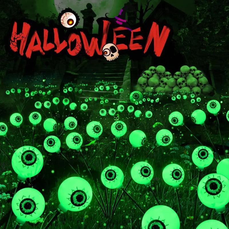 Halloween Outdoor Solar Eyeball Lights-LED Green&Purple Glow, Swinging Firefly Effect,for Creepy Yards, Lawns & Halloween Haunts
