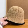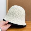 Plüsch Fischerhut Damen Farbblockmode vielseitiger gestrickter Fischerhut großer Kopf lässt kleines Gesicht erscheinen winddichter warmer Topfhut