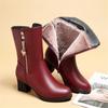 Hoher Stiefel für Damen Schwarz Braun Echtes Leder Hoher Absatz Damenschuhe Mid-Calf Stiefel Rutschfest Dickes Plüsch Damen Winterstiefel