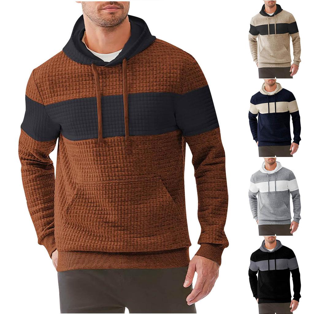 Herrenmode Sweatshirt Herren Kordelzug Gerippter Abschluss Tasche Kapuzenpullover