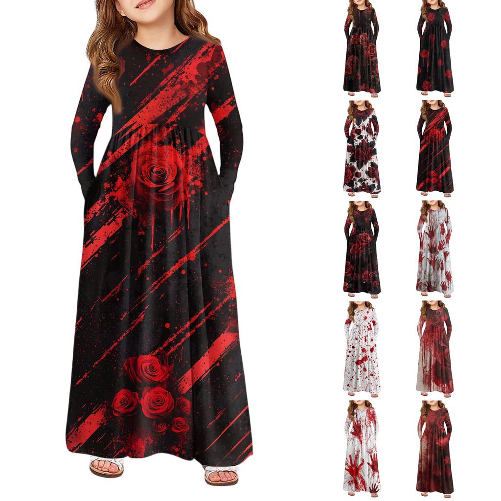 Mädchen Maxi Kleid Halloween Tag- Langarm Taschenkleid