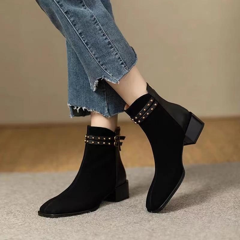 Shoes for Women 2025 Korean Fashion Square Toe Women's Boots Simple All-match Black Ankle Boots Stylish Office Ladies Shoes