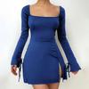 Europäischer & Amerikanischer Stil Rotes A-Linien-Kleid mit eckigem Kragen - Herbst/Winter Hohe Taille mit Schlitz