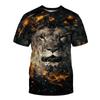 Sommer Kurzarm 3D Digitaldruck Tier Löwe Rundhals Modische Lässige Herren T-Shirts