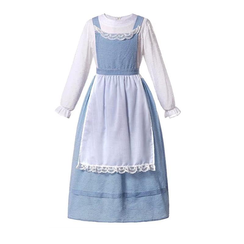 Neues Modell, blau kariertes Bauernmädchen, kleiner frischer ländlicher Stil, Fotografie Fotoausflug, Eltern-Kind-Outfit