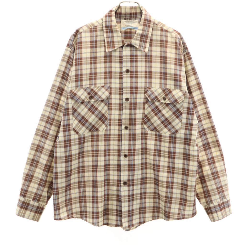 Sears 70s Made in USA Vintage Check Pattern Long sleeve CPO shirt L Brown Men's Used