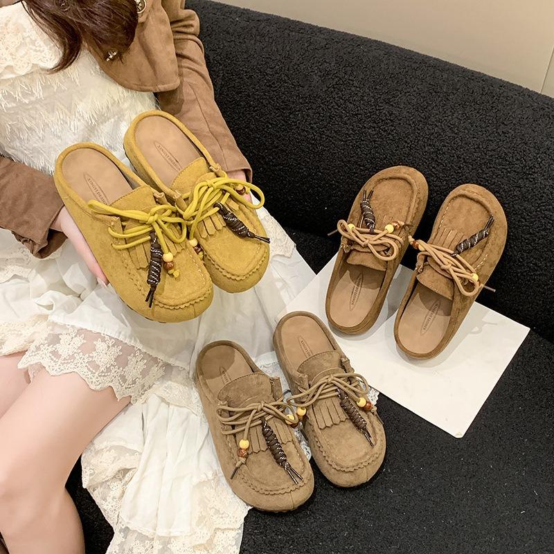 Hausschuhe Damen dicker Boden erhöht in der Höhe, Sommer neu retro ethnisch ein Pedal Lazy Bag Kopf halbe Hausschuhe